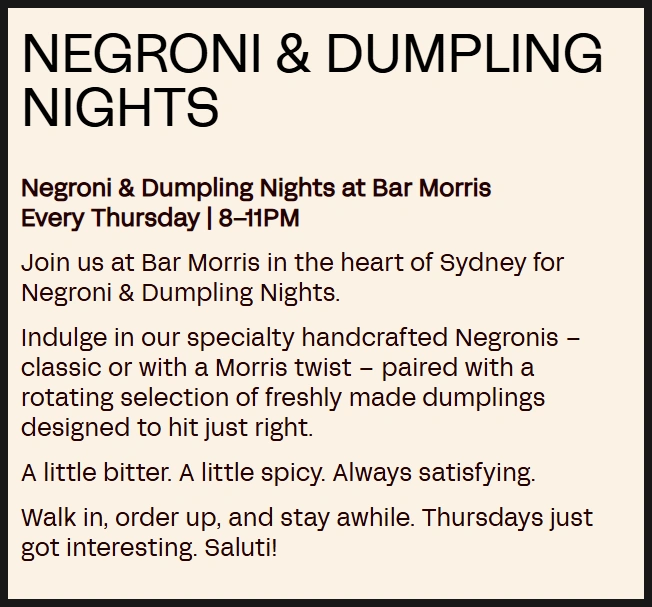 make sure an evening at Bar Morris is on your itinerary. It’s an experience you won’t want to miss.