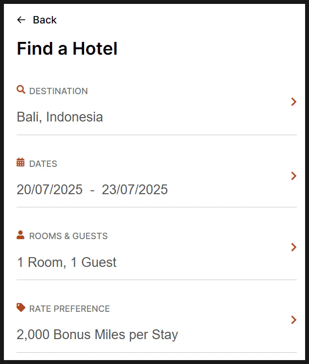 The results clearly highlight the participating hotels, taking the guesswork out of finding an eligible property.