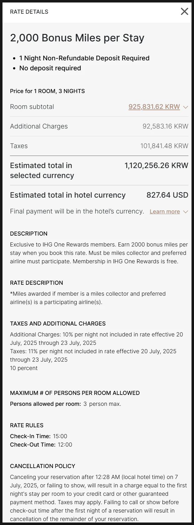 This promotion is only for members who choose to earn airline miles over IHG points.