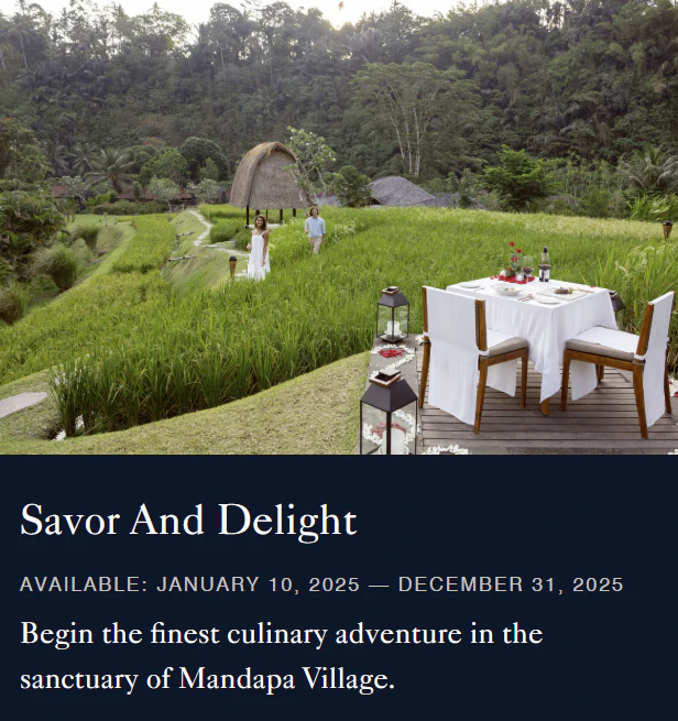 You can find all of Mandapa’s exclusive offers directly on their official website