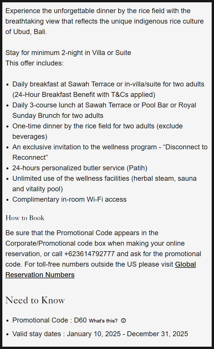 This offer is ideal for those planning a leisurely and immersive getaway in Ubud.