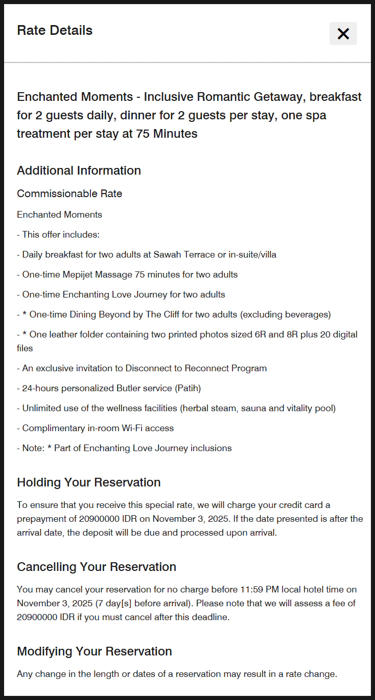 You can always click on “Rate Details” to review all the specifics of each package before finalizing your booking.